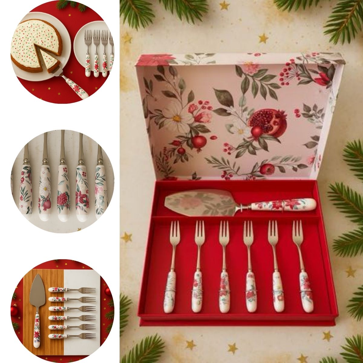 · Contém: 6 garfos de sobremesa + 1 espátula para bolo