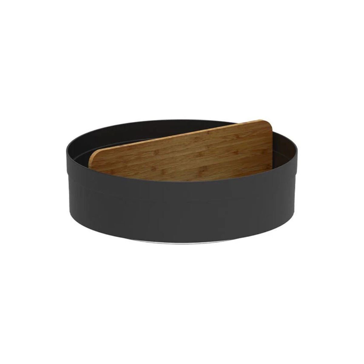 Seu sistema giratório 360° facilita o acesso aos itens, enquanto a divisória removível em bambu permite setorizar e organizar com mais praticidade.